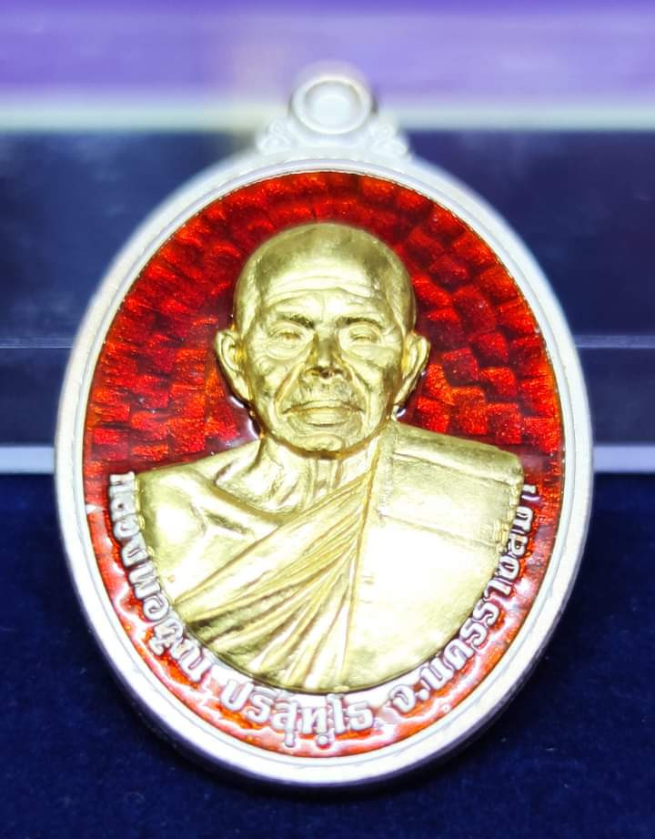 เหรียญเจริญพรบน92 ปี2557 (นำฤกษ์) พิมพ์2หน้า เนื้อเงิน ลงยาสีแดง no.20 มีกล่อง |