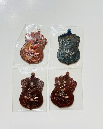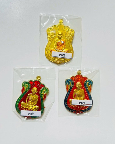 วัดใจ เหรียญเลื่อนสมณศักดิ์47 หลวงพ่อคูณ วัดบ้านไร่ จ.นครราชสีมา เนื้อทองทิพย์ลงยา 3 เหรียญ เลข35 |