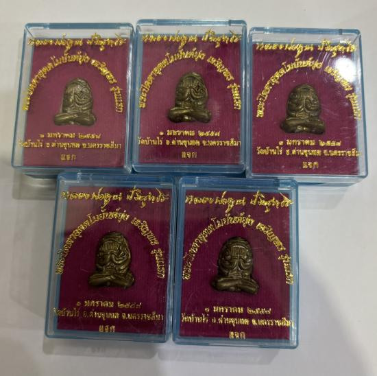 พระยอดธงปริสุทโธ รุ่นเสาร์ ๕ ปี 2000 เนื้อตะกั่วเถื่อน ติดตะกรุดทองคำฝังเเขน จีวร เกศา หลวงพ่อคูณ วัดบ้านไร่ |