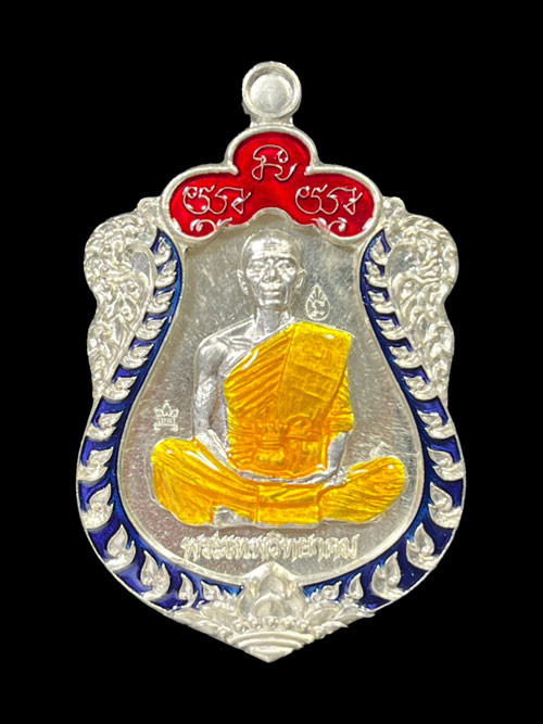 เหรียญเจริญพรไตรมาส เนื้อเงินองค์ทองคำ กรอบทองคำลงยา 2 สี NO. 45 |
