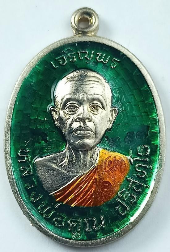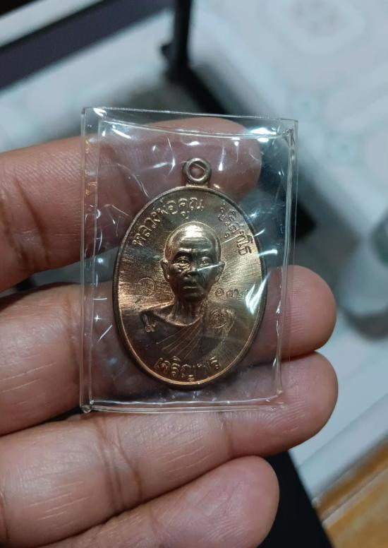 เหรียญหลวงพ่อคูณ พิมพ์ห่วงเชื่อม เนื้อทองคำลงยา หมายเลข 53 ปี 2557 น้ำหนัก 22.1 กรัม |