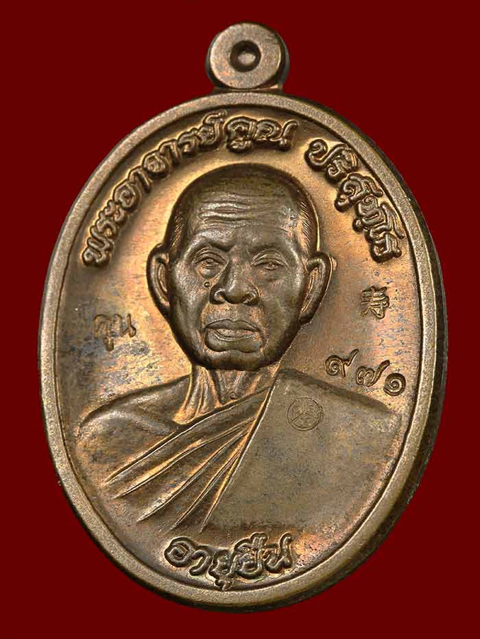 เหรียญหลวงพ่อคูณ อายุยืน 2553 เนื้อทองแดง จารหน้าหลัง |