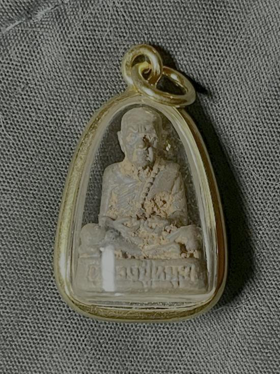 พระผงเนื้อชมภูนุข หลวงพ่อกวยนั่งเมฆ เลี่ยมกรอบเก็บผิว หลวงปู่หมุน วัดบ้านจาน ปลุกเสก |
