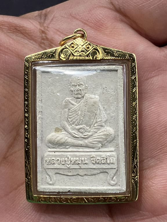 พระผงนั่งตั่ง หลวงปู่หมุน ฐิตสีโล ปี2542 สภาพเดิมๆ เลี่ยมทองพร้อมใช้ครับ |