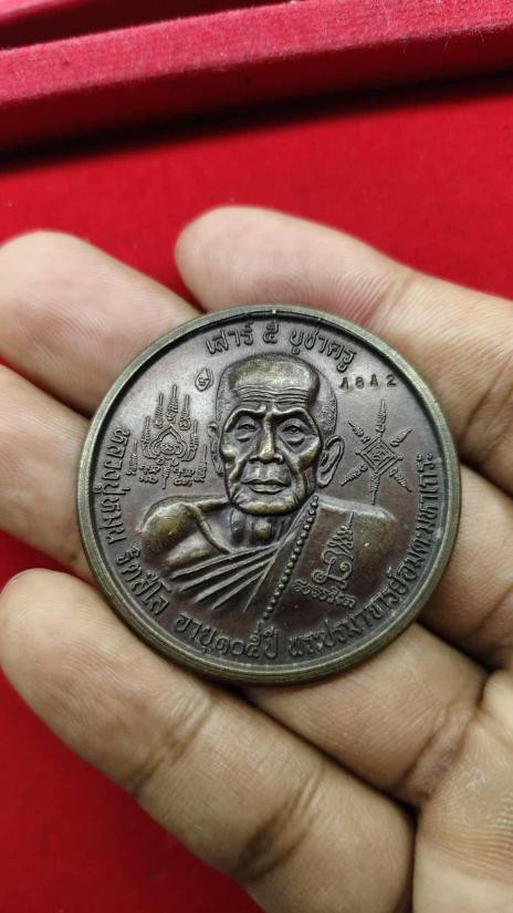 เหรียญหลวงปู่หมุน ฐิตสีโล เนื้อกะไหล่ทอง วัดคลองทรายสร้าง จ.จันทบุรี ปี 2543 สภาพสวยเดิม พร้อมกล่องเดิมครับ |