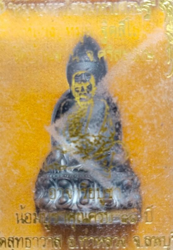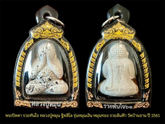 พระหลวงปู่หมุน วัดบ้านจาน รุ่นดวงเศรษฐี เนื้อผง ปี2543 จ.ศรีสะเกษ เลี่ยมทองพรัอมบัตรรับรอง(1) |