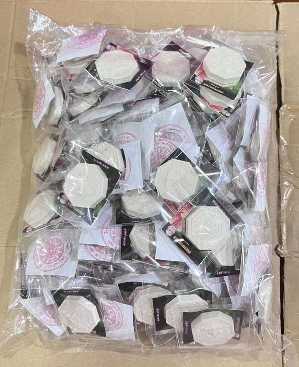 20 บาท...ลูกอมพระราหู มหาเศรษฐี รุ่น 9 อริยะ 5 แผ่นดิน วัดชมนิมิตร จ.สมุทรปราการ หลวงปู่หมุน ร่วมปลุกเสก เนื้อผง ปี 2544 |