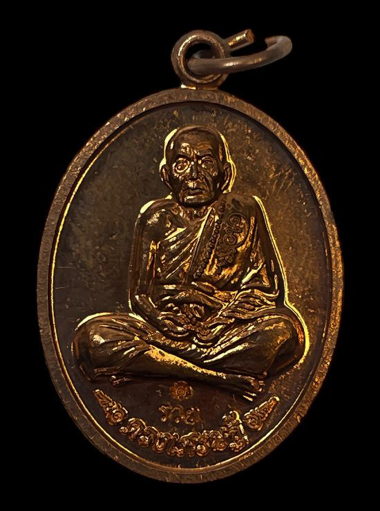 เหรียญมนต์พระกาฬหลวงปู่หมุนวัดบ้านจาน เนื้อทองแดง ตอกโค๊ต สร้างปี พ.ศ.2543 เลี่ยมทอง มีบัตร g-pra |