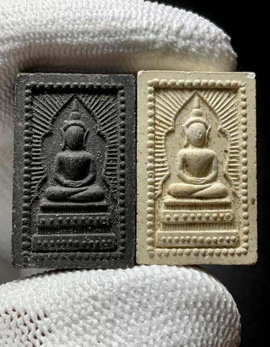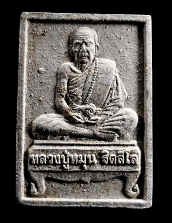พระผงดวงเศรษฐี หลวงปู่หมุน วัดบ้านจาน จังหวัดศรีสะเกษ ปี 2543 เนื้อลายหินอ่อน มีจีวรหลวงปู่ (มุมล่างด้านหลังขวามือและด้านบนขวามือมีกระเทาะขอบด้านข้างตามรูป) พระเก่าเก็บที่บ้านคะ |