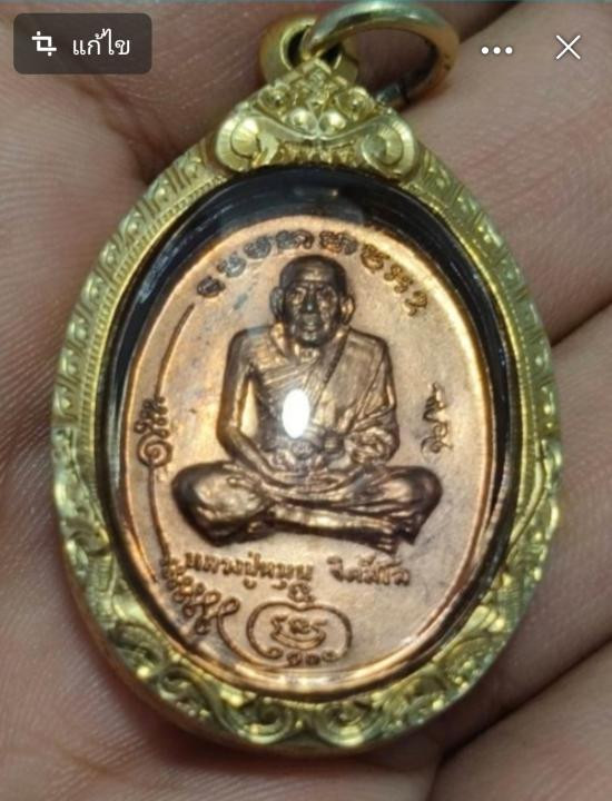 เหรียญรุ่นเเรก มนต์พระกาฬเนื้อทองเเดง ปี 2543 ผิวสวยเเดงส้มหน้าหลัง พร้อมเลี่ยมเงินชุบทองครับ |