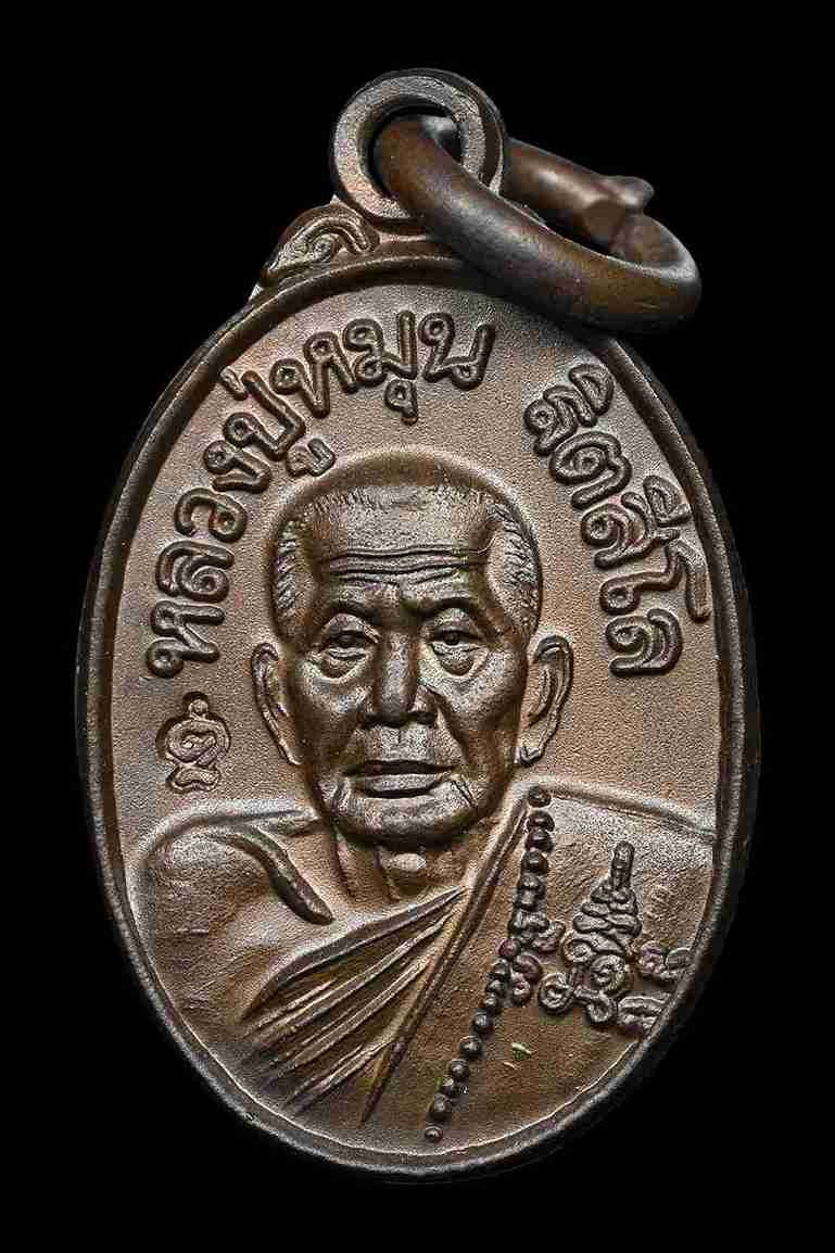 เหรียญหลวงปู่หมุน วัดบ้านจาน รุ่นหมุนเงินหมุนทอง พิมพ์ประคำ 18 เม็ดบาง เนื้อทองแดง ปี 2542 จ.ศรีสะเกษ (โค้ดมะตื้น) |