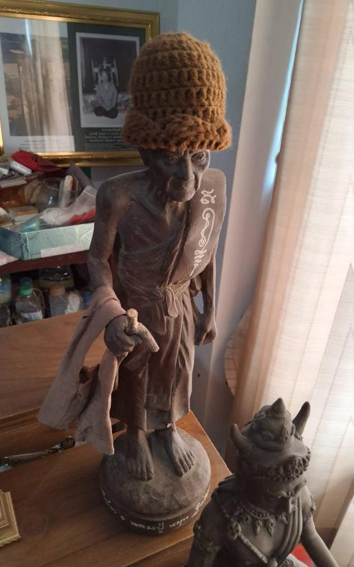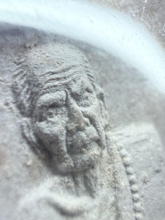 เศียรพ่อครูฤาษีจินดามะณี รุ่นไหว้ครูบูรพาจารย์ปี2544 ปิดทองแต่งหน้า หลังฝังเหรียญเม็ดแตง สร้างแค่ 108องค์ หลวงปู่หมุน |