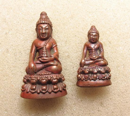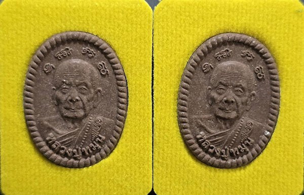 (2 องค์) . สภาพสวย . เท่าไหร่ เท่านั้น ... พระผงดวงเศรษฐี (บล็อกแรก) หลวงปู่หมุน เนื้อผงน้ำพี้ ปี 2556 + กล่องเดิม |