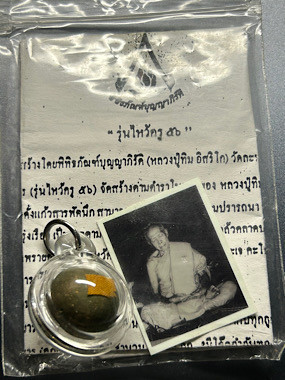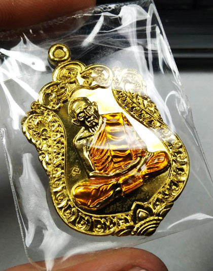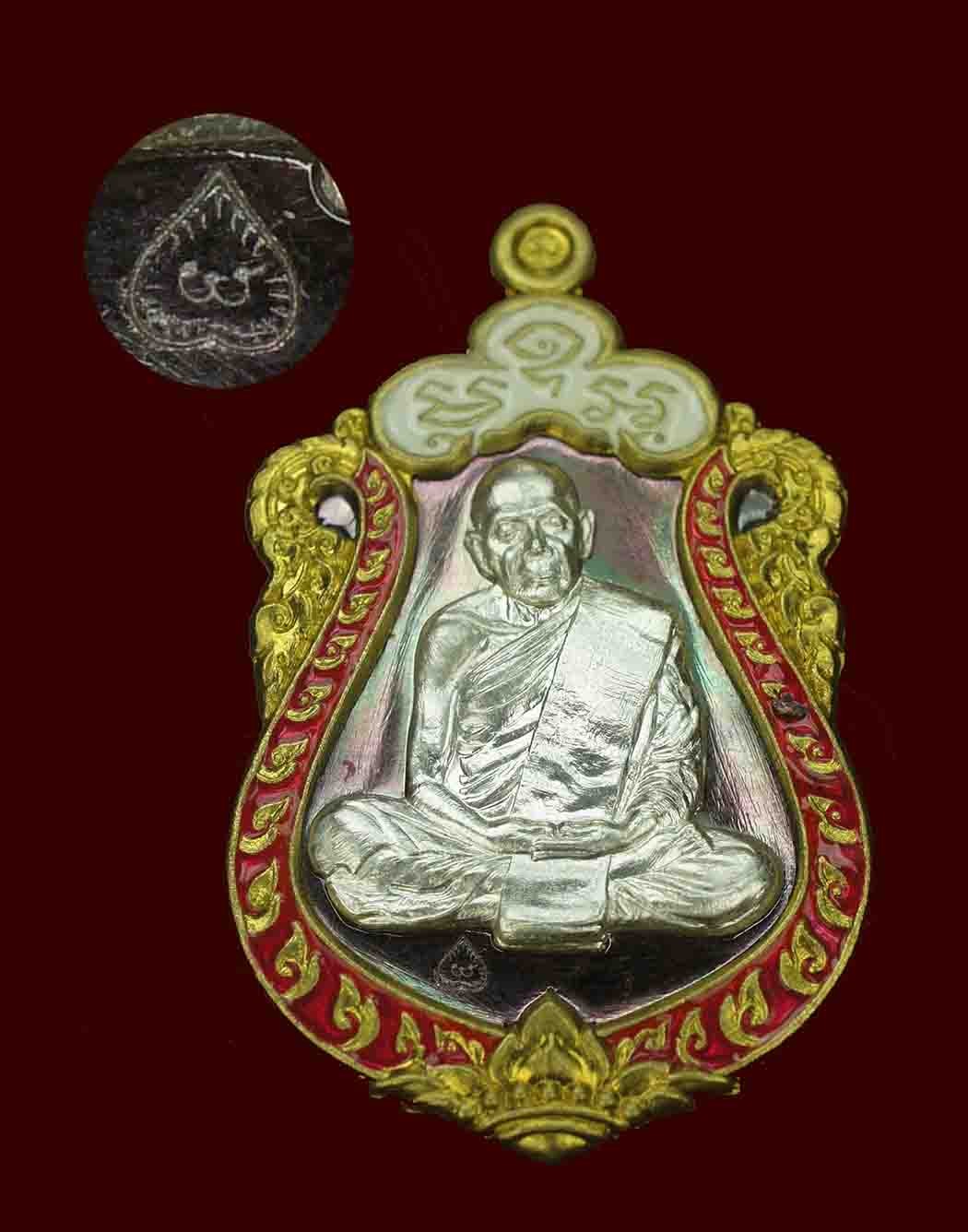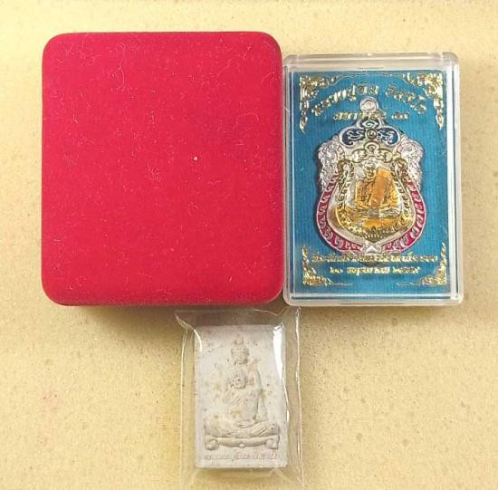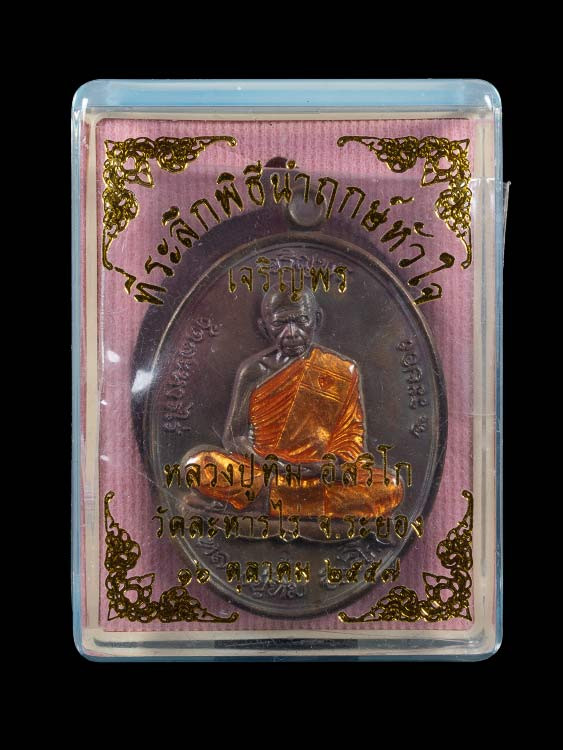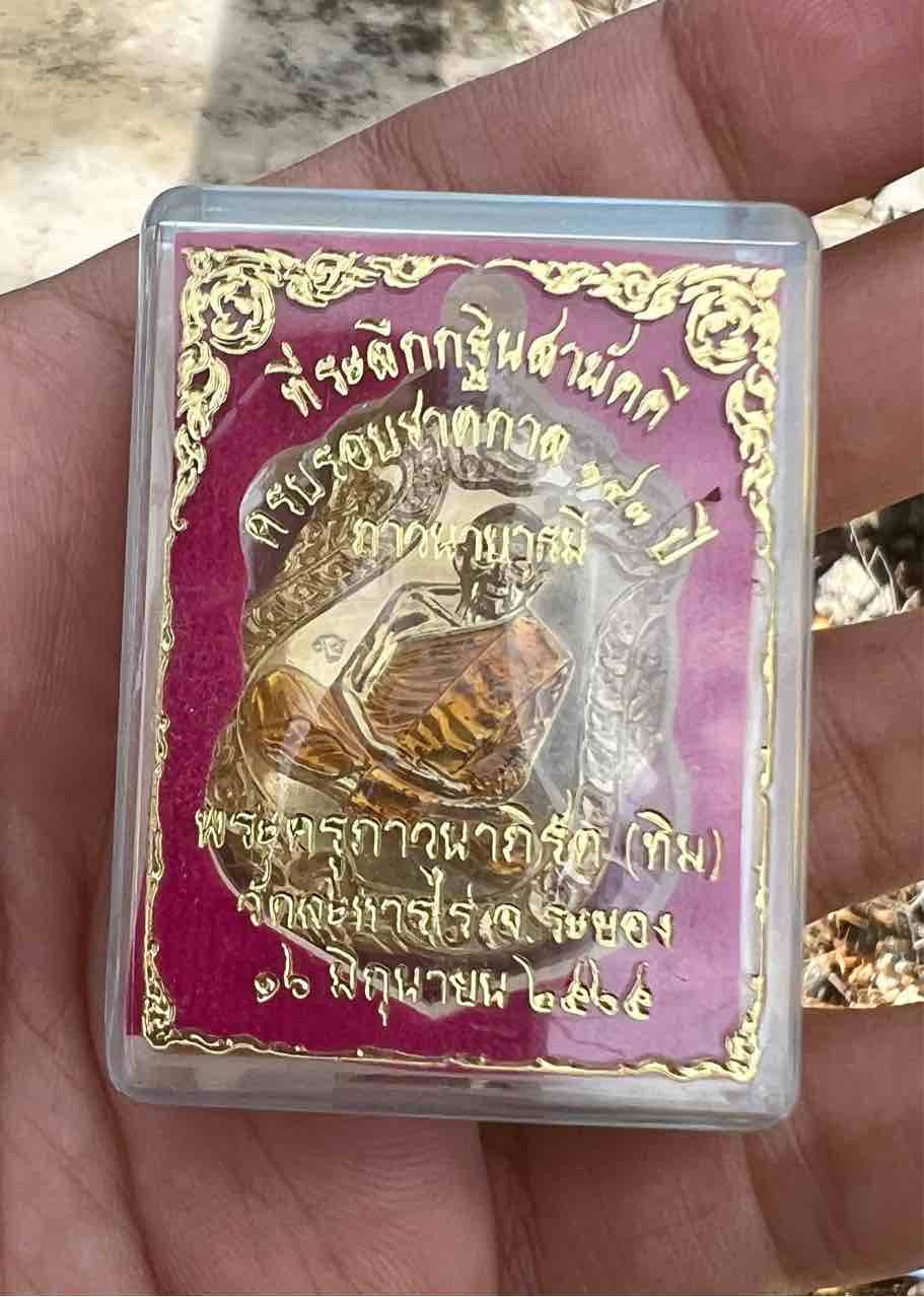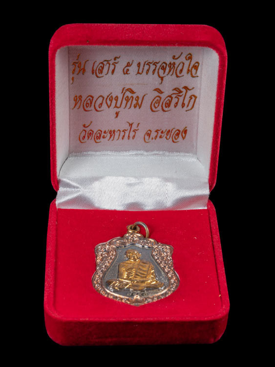 หลวงปู่ทิม รุ่นครบไตรมาส บรรจุหัวใจ ปี2557 เนื้อเงิน หน้ากากทองคำ no.164 มีกล่อง |