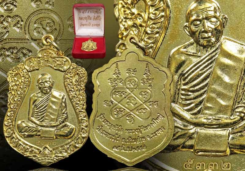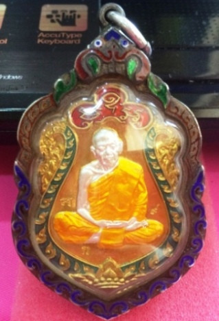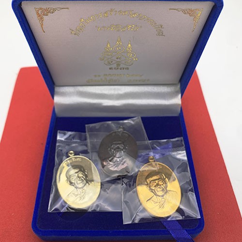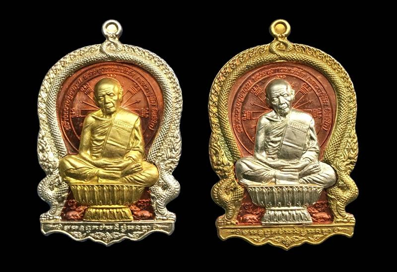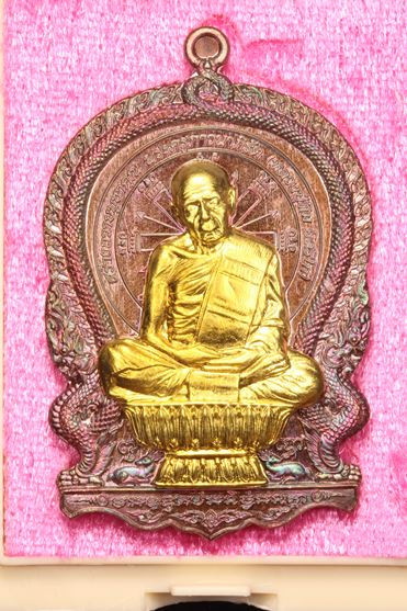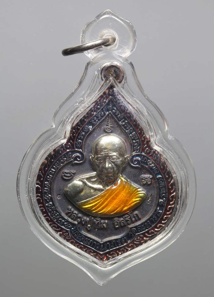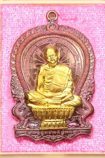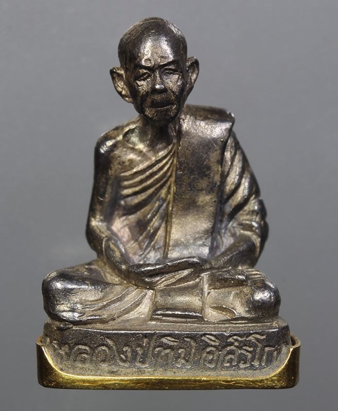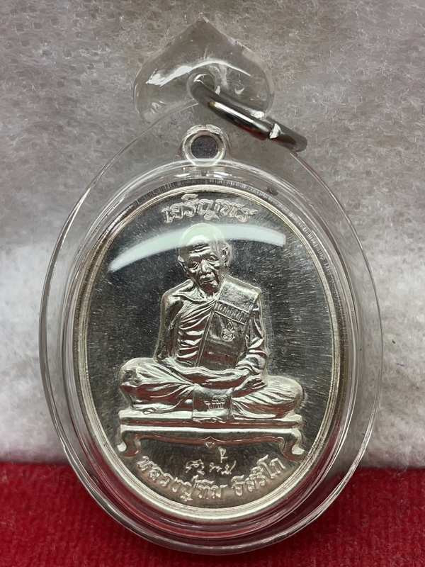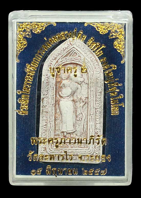 หลวงปู่ทิม รุ่นครบไตรมาส บรรจุหัวใจ ปี2557 เนื้อเงิน หน้ากากทองคำ no.164 มีกล่อง |