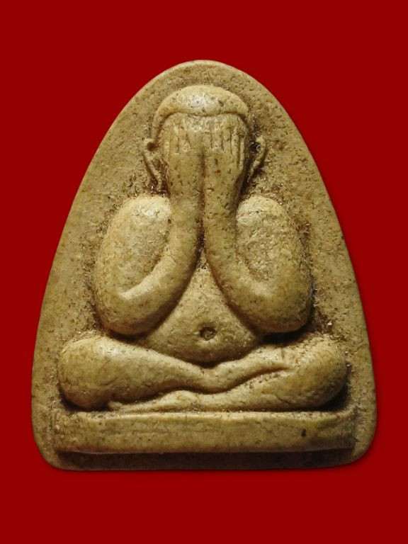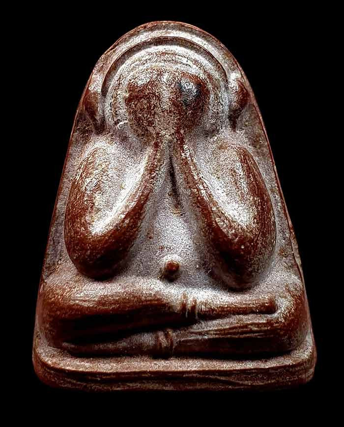พระปิดตาวัดหนองกาน้ำ พิมพ์หลังยันต์แปดตัว (เนื้อผงแดง) ปี 2515 หลวงปู่ทิม ปลุกเสก พร้อมบัตร |