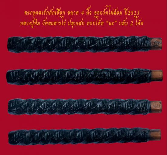 ตะกรุดลงรักถักเชือก ขนาด 4 นิ้ว ออกวัดไผ่ล้อม ปี2513 หลวงปู่ทิม วัดละหารไร่ เป็นเจ้าประธานในพิธี ตอกโค้ดนะ กลับ2โค้ด ออกทำบุญในงานผูกพัทธสีมา (พร้อมบัตร G-Pra) |