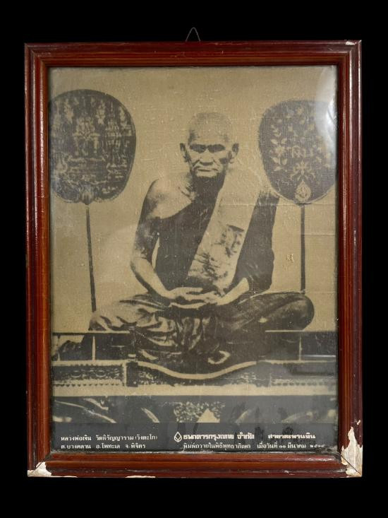 รูปเหมือนหลวงพ่อเงิน วัดบางคลาน รุ่นช้างคู่ พิมพ์ใหญ่ เนื้อทองเหลือง ปี 2526 จ.พิจิตร (วัดท้ายน้ำสร้าง) พร้อมบัตรรับรองการันตรีพระ |