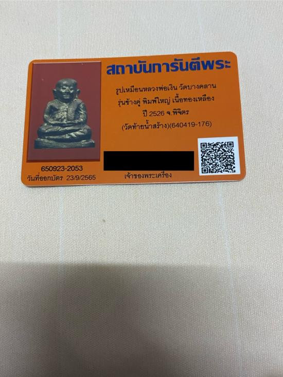 รูปเหมือนหลวงพ่อเงิน วัดบางคลาน พิมพ์บล็อกแตก เนื้อทองเหลือง ปี2515 จ.พิจิตร(วัดบึงนารางสร้าง)พร้อมบัตรรับรอง |