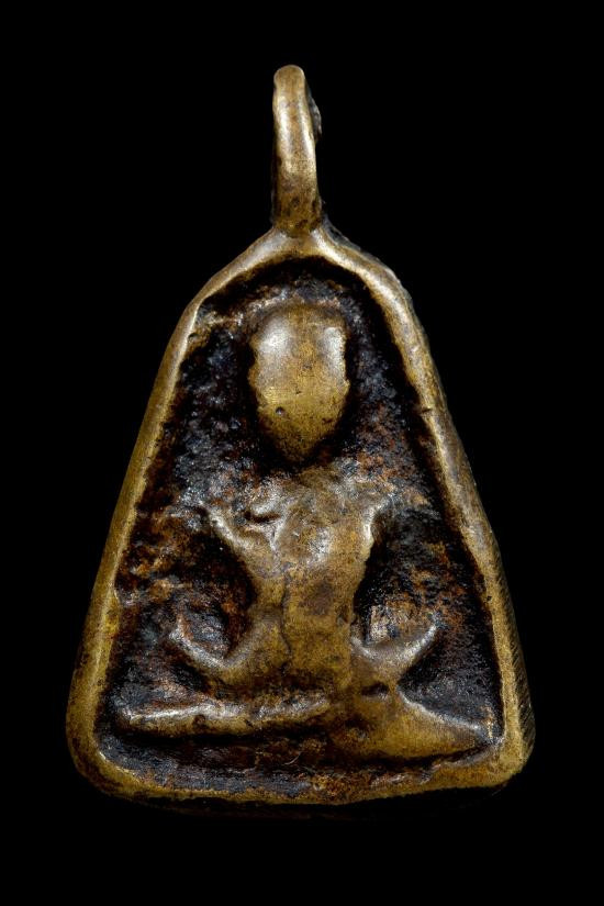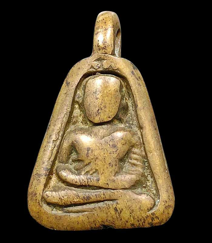 วัดใจ พระเผง หลวงพ่อเงิน วัดบางคลาน พิมพ์พระเจ้าห้าพระองค์ ปี 15 เนื้อผงใบลาน เลี่ยมเก่า |