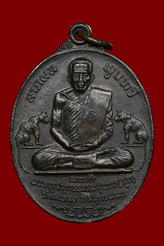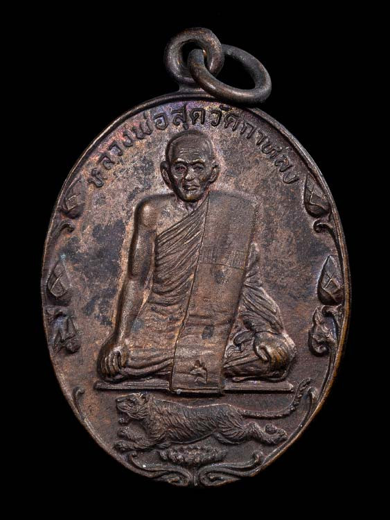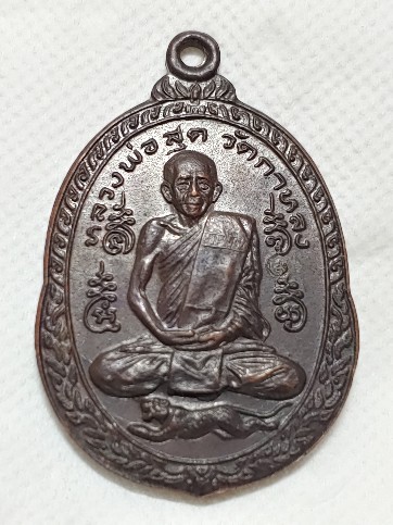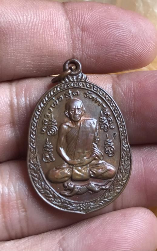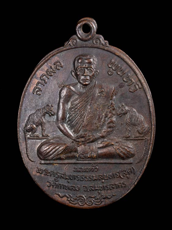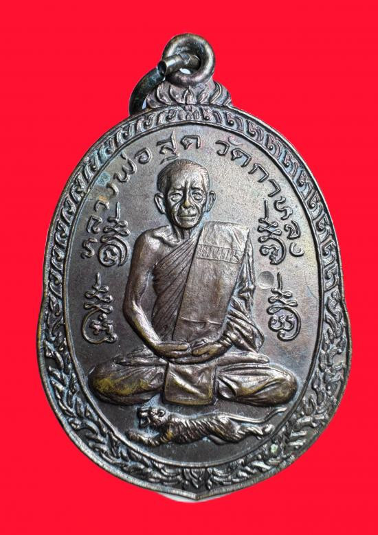 เหรียญหลวงพ่อสุด วัดกาหลง รุ่นเสือคำราม (เสือบิน) บล็อคเม็ดต า เนื้อทองแดง ปี 2520 จ.สมุทรสาคร |