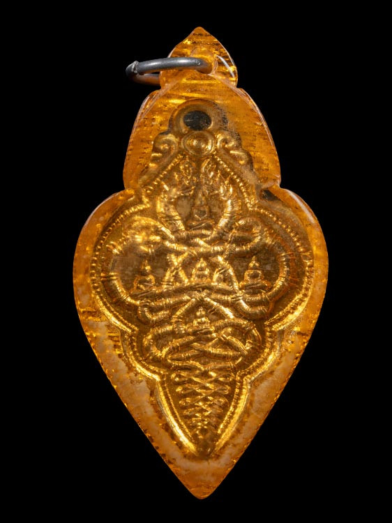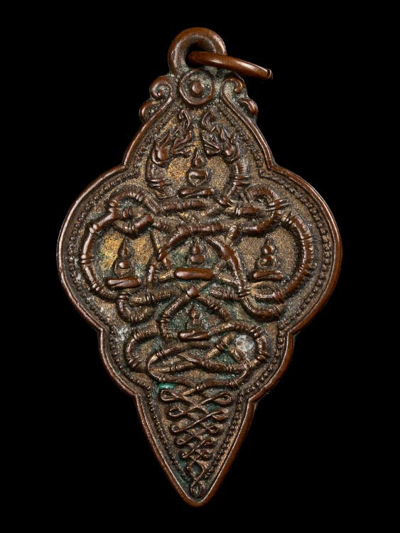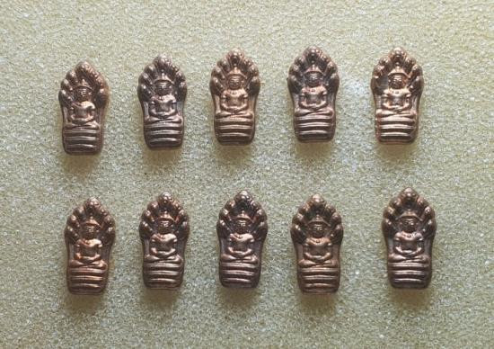 พระนาคปรกใบมะขาม หลวงพ่อเนื่อง วัดจุฬามณี รุ่นแรก เนื้อทองแดง สภาพสวยพร้อมเลี่ยมทอง |