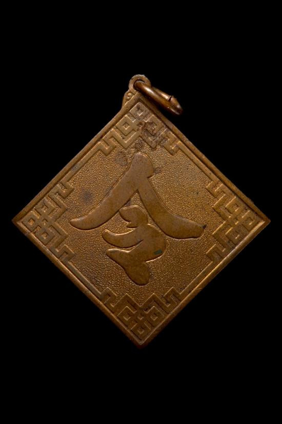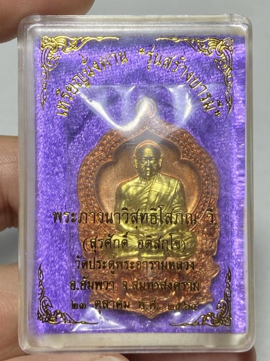 เหรียญโชคดี พระมหาสุรศักดิ์ วัดประดู่พระอารามหลวง อัมพวา เนื้อทองแดง |