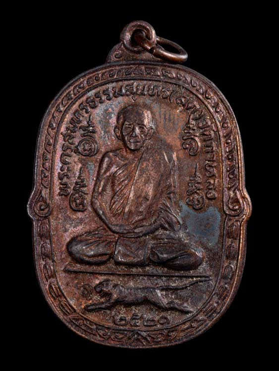 เหรียญเสือเผ่น หลวงพ่อสุด วัดกาหลง เสาร์๕ เนื้อทองแดง ปี2523 |