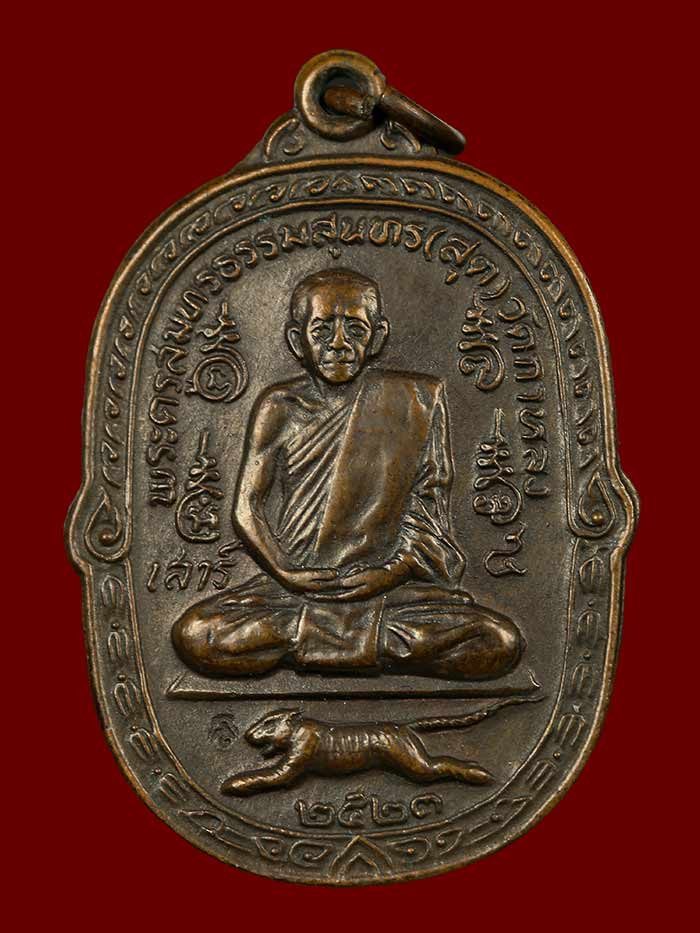 เคาะเดียวแดง++เหรียญหลวงพ่อสุด วัดกาหลง รุ่นเสือเผ่น พิมพ์Bแขนขีด เนื้อทองแดง ปี 2517 มาพร้อมบัตรรับรองสภาพใช้ |