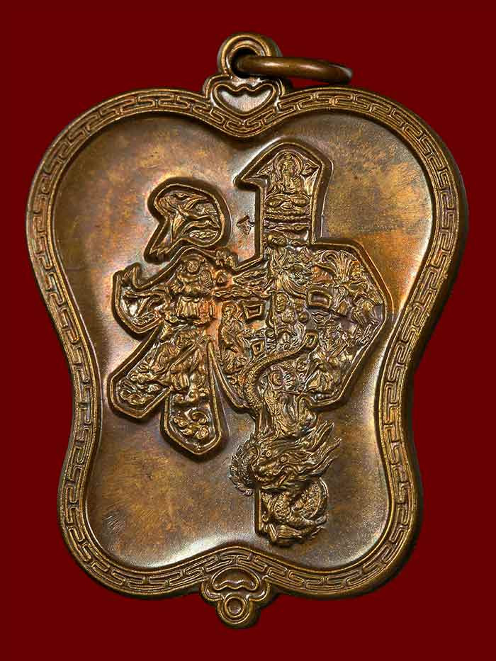 เหรียญกันชง หลวงพ่ออิฏฐ์ วัดจุฬามณี รุ่น5(เสริมมงคล) พิมพ์ใหญ่ เนื้อทองแดงกะไหล่ทองลงยาสีแดง |