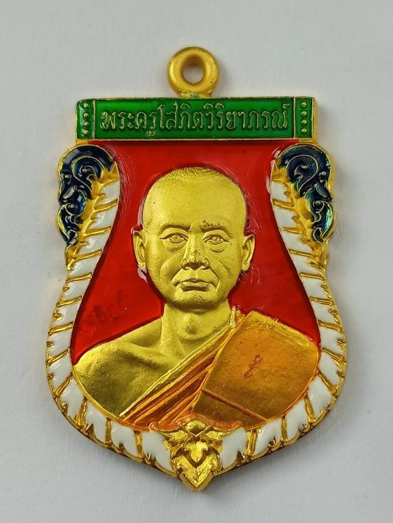 ออกวัด 2,500 เหรียญเสมาหน้าแซยิด หูเชื่อมโบราณ เจริญพร ลาภมาไม่ขาด หลวงพ่ออิฏฐ์ วัดจุฬามณี เนื้อเงินลงยาแดง ลงยาจีวร |