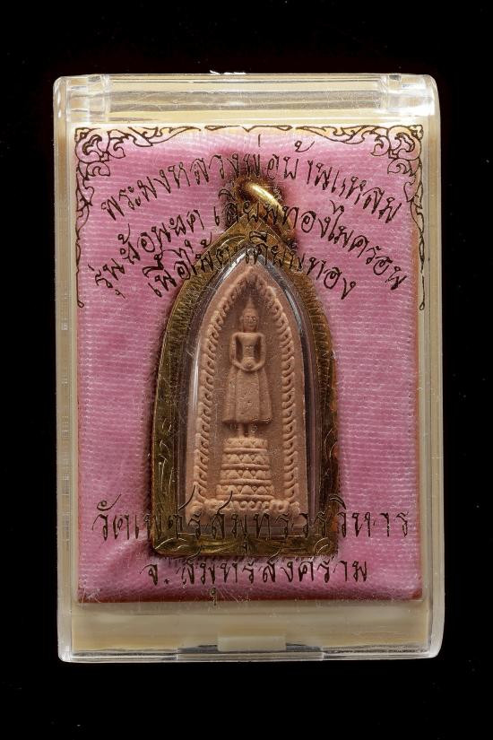 จำปีปลดหนี้ พุทธศิลป์ พระพุทธชินราช ประทับหลังท้าวเวสสุวรรณ (พิมพ์ใหญ่) เนื้อเงินลงยาแดง ฝั่งเพรชแท้ที่หน้าผาก เงินหนัก 15.8 กรัม แดง150 |