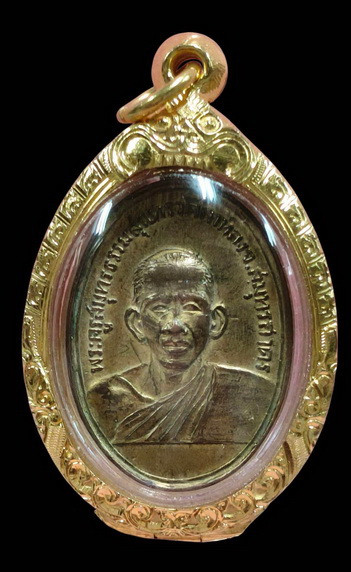 เหรียญกันชงทรงจำปี รุ่นแรกพิมพ์ใหญ่ หลวงพ่ออิฎฐ์ วัดจุฬามณี สมุทรสงคราม เนื้อตะกั่ว กล่อง |