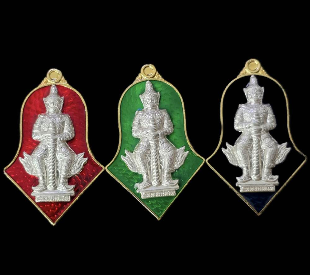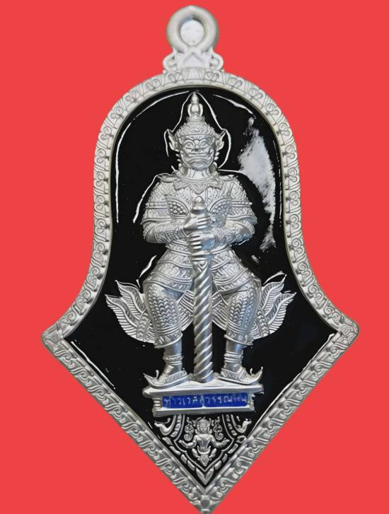 #แดงเคาะแรกครับ# เหรียญท้าวเวสสุวรรณ รุ่นเจริญทรัพย์ พิมพ์ใหญ่ ปี 2563 วัดจุฬามณี เนื้อเงินลงยาดำหมายเลข 842 มีกล่องครบ |