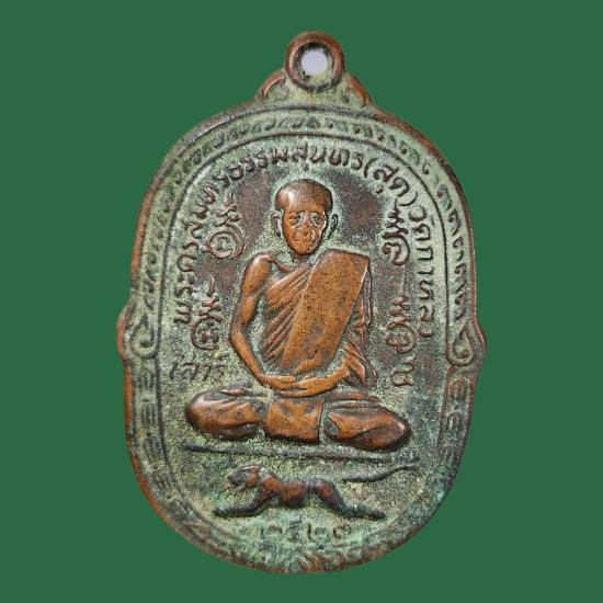 เคาะเดียวแดง เหรียญเสือน้อย หลวงพ่อสุด วัดกาหลงโค๊ตโค้ด ส.ในวงกลม เนื้อทองแดง ปี2521 |