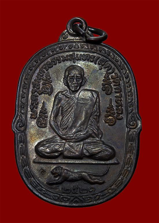 เหรียญหลวงพ่อสุด วัดกาหลง รุ่นเสือเผ่น พิมพ์เสือหางตรง เนื้อทองแดง ปี 2521 พร้อมบัตรการันตรีพระ |