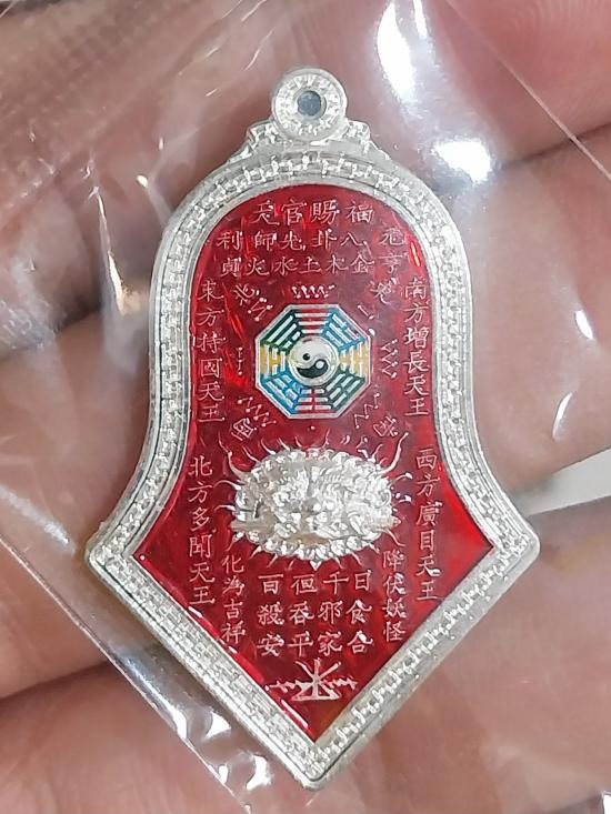 เหรียญหลวงพ่อวัดบ้านแหลม ประทับหลังท้าวเวสสุวรรณโณ พิมพ์ทรงจำปีใหญ่ เนื้อเงินลงยาแดง เลขโค๊ต 831 พร้อมกล่องเดิม |