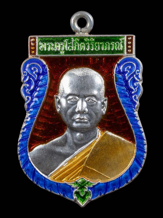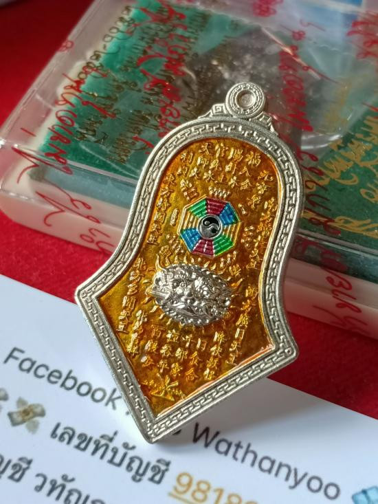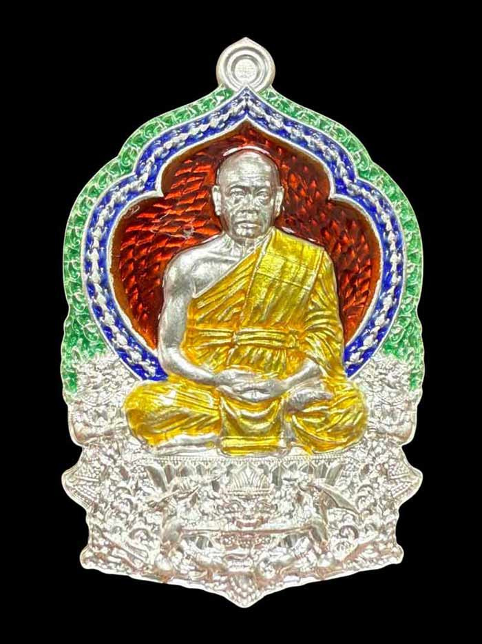 หลวงพ่อโสธร พรปีใหม่ หลวงพ่ออิฐ วัดจุฬามณี เนื้อนวะแก่ทองคำ ลงยาแดง หน้ากากเงินบริสุทธิ์ หน้า-หลัง |