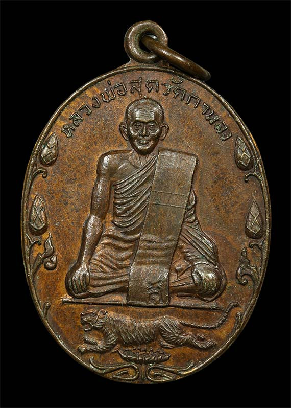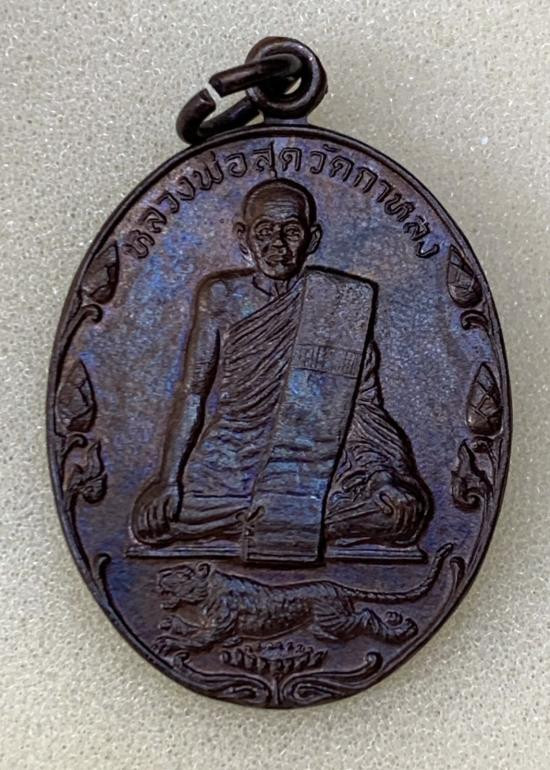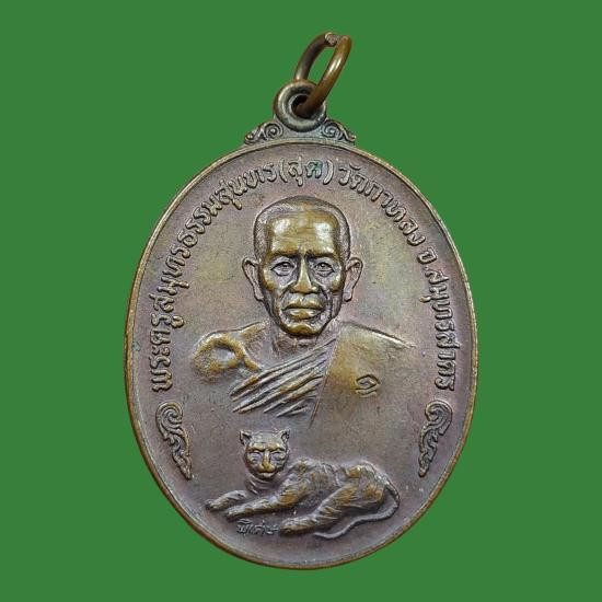 เหรียญหลวงพ่อสุด วัดกาหลง รุ่นเสือเผ่น พิมพ์เสือหางตรง เนื้อทองแดง ปี2521 จ.สมุทรสาคร + บัตรรับรอง |