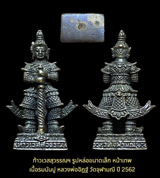 รูปหล่อท้าวเวสรุ่นแรก หลวงพ่ออิฐ วัดจุฬามณี พิมพ์เข่าย่อ ปี 2532 โค้ด โอม นิยม |
