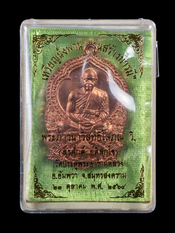 พระมหาสุรศักดิ์ วัดประดู่ เหรียญนั่งพาน รุ่นสร้างบารมี เนื้อทองแดงซาติน No.2374 |