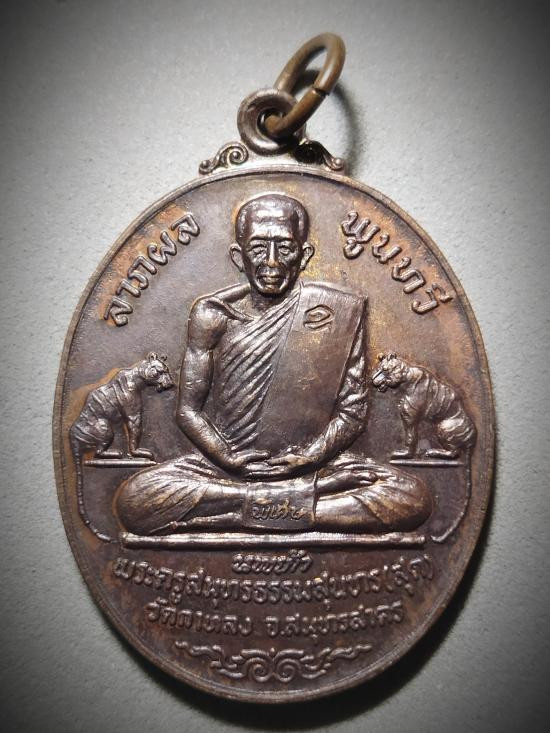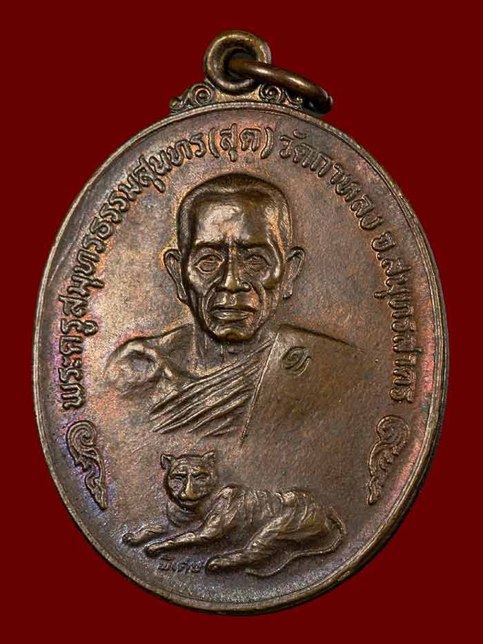 เหรียญหลวงพ่อสุด วัดกาหลง รุ่นเสือเผ่น พิมพ์เสือหางตรง เนื้อทองแดง ปี 2521 สมุทรสาคร + บัตร g pra ครับ |