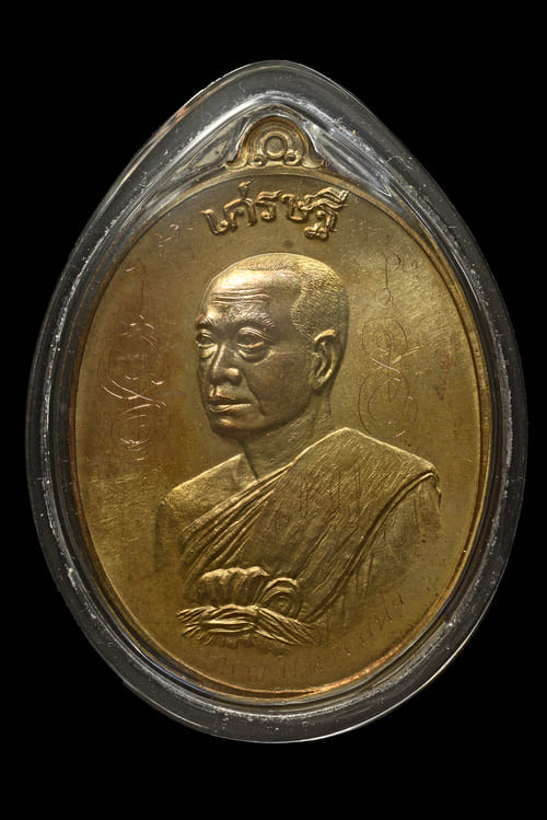เหรียญโชคดี พระมหาสุรศักดิ์ วัดประดู่พระอารามหลวง อัมพวา เนื้อทองเหลือง |