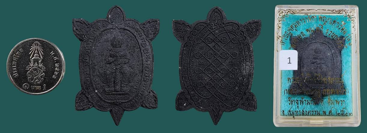 เหรียญจตุมหาราชิกา พญาเต่าเรือน รุ่นแรก หลวงพ่ออิฏฐ์ วัดจุฬามณี รุ่น "ลาภ ผล พูน ทวี" ปี2563 เนื้อดำ ผงไม้พยุง สวยเดิมๆพร้อมกล่องครับ |