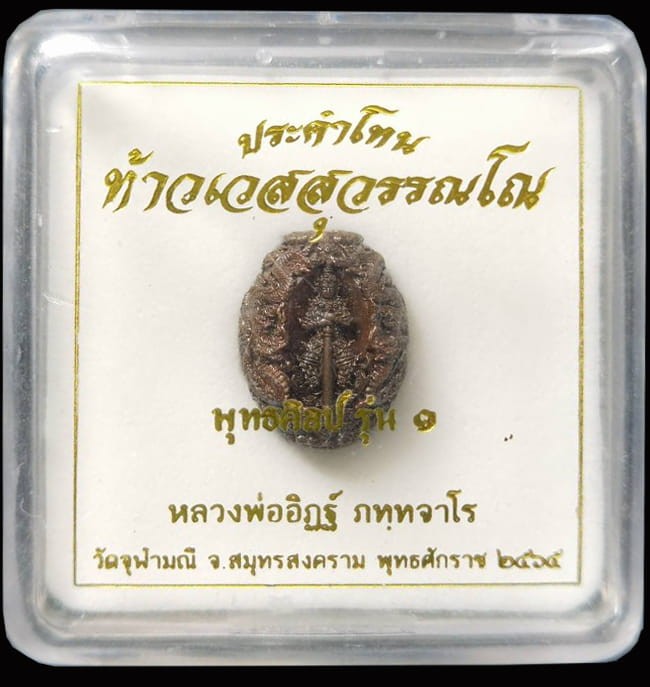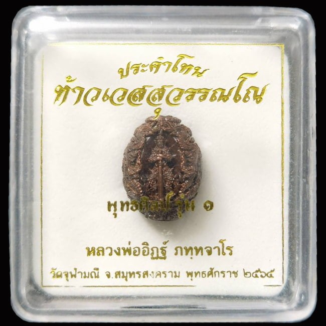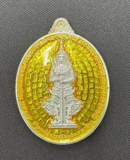 เหรียญจำปีท้าวเวสสุวรรณ พิมพ์เล็ก เนื้อเงิน รุ่นซื้อที่ดินปี 65 เลี่ยมพร้อมใช้ แดงเคาะแรก |
