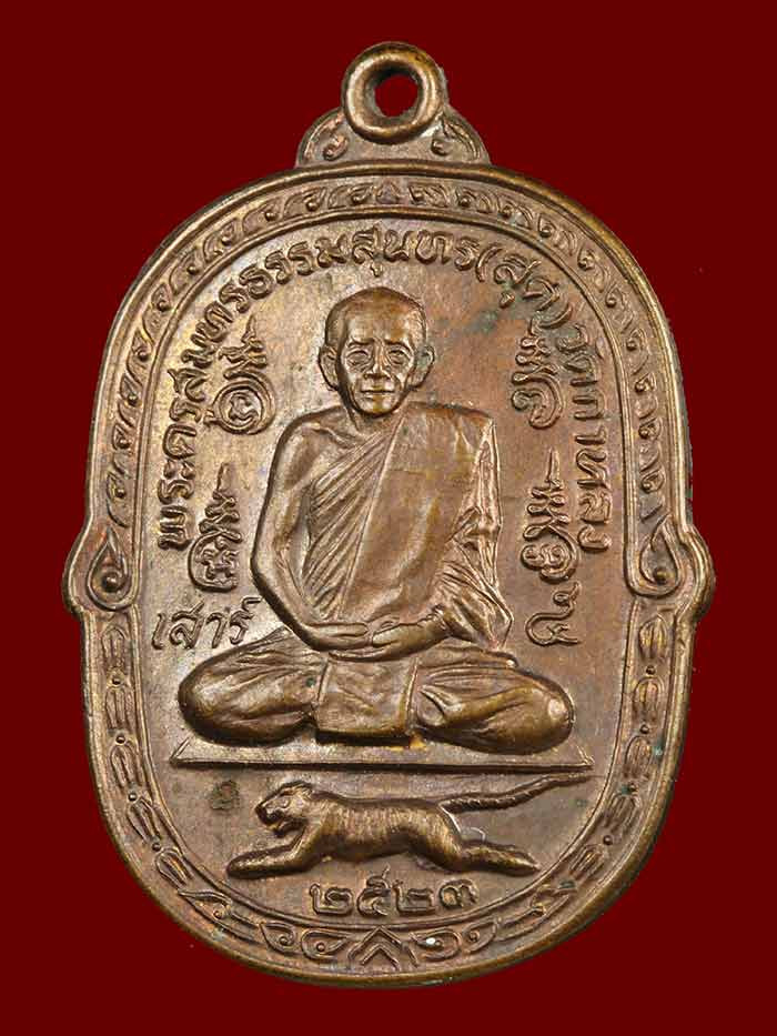 เหรียญเสือคำรามหลวงพ่อสุด ปี 2520 เนื้อทองแดง บล็อคมีเม็ดตาสวยๆ เลี่ยมเงินพร้อมใช้ |