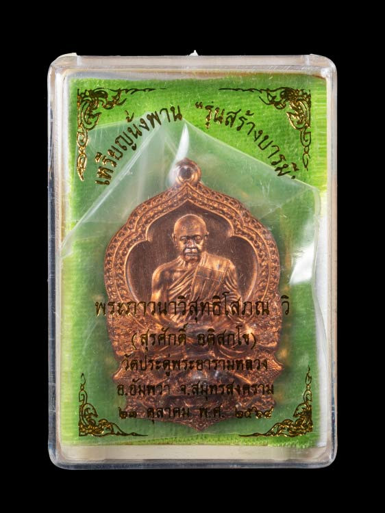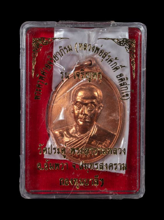 เหรียญพระมหาสุรศักดิ์ วัดประดู่พระอารามหลวง จ.สมุทรสงคราม รุ่นเศรษฐีอัมพวา เนื้อทองแดง พร้อมซองเดิมจากวัด |