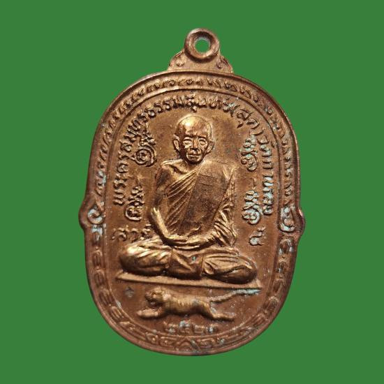 เหรียญนี้คือ เหรียญเสือเผ่น หลวงพ่อสุด (พระครูสมุทรธรรมสุนทร) วัดกาหลง จังหวัดสมุทรสาคร รุ่นปี พ.ศ. 2521 พร้อมบัตร |