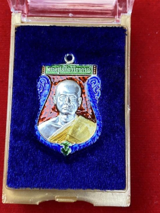 ออกวัด 2,500 เหรียญเสมาหน้าแซยิด หูเชื่อมโบราณ เจริญพร ลาภมาไม่ขาด หลวงพ่ออิฏฐ์ วัดจุฬามณี เนื้อเงินลงยาแดง ลงยาจีวร เลข8260 |