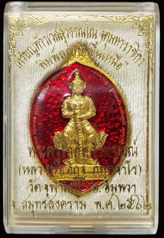 เหรียญท้าวเวสสุวรรณโณ จตุมหาราชิกา พิมพ์จำปีย้อนยุคปี 45 รุ่นเทวสถิตย์ 63 หลวงพ่ออิฏฐ์ วัดจุฬามณี เนื้อนวะโลหะลงยาแดงหน้ากากทองคำ หมายเลข 172 พร้อมกล่องในกล่องนอกและซองเดิม แดงต่ำกว่าราคาจอง |